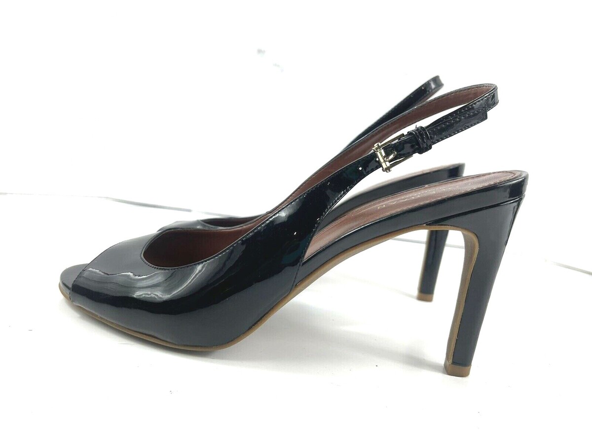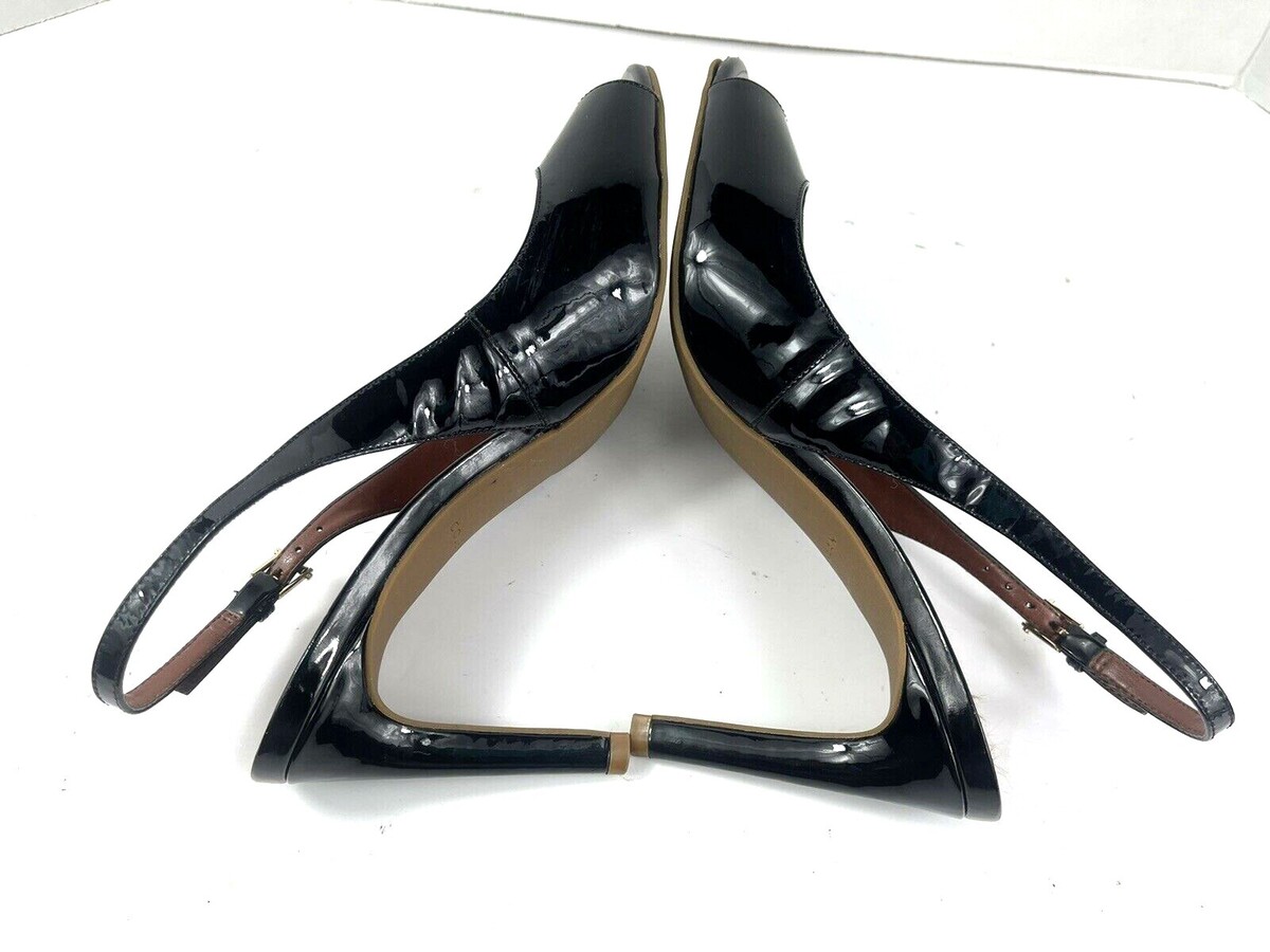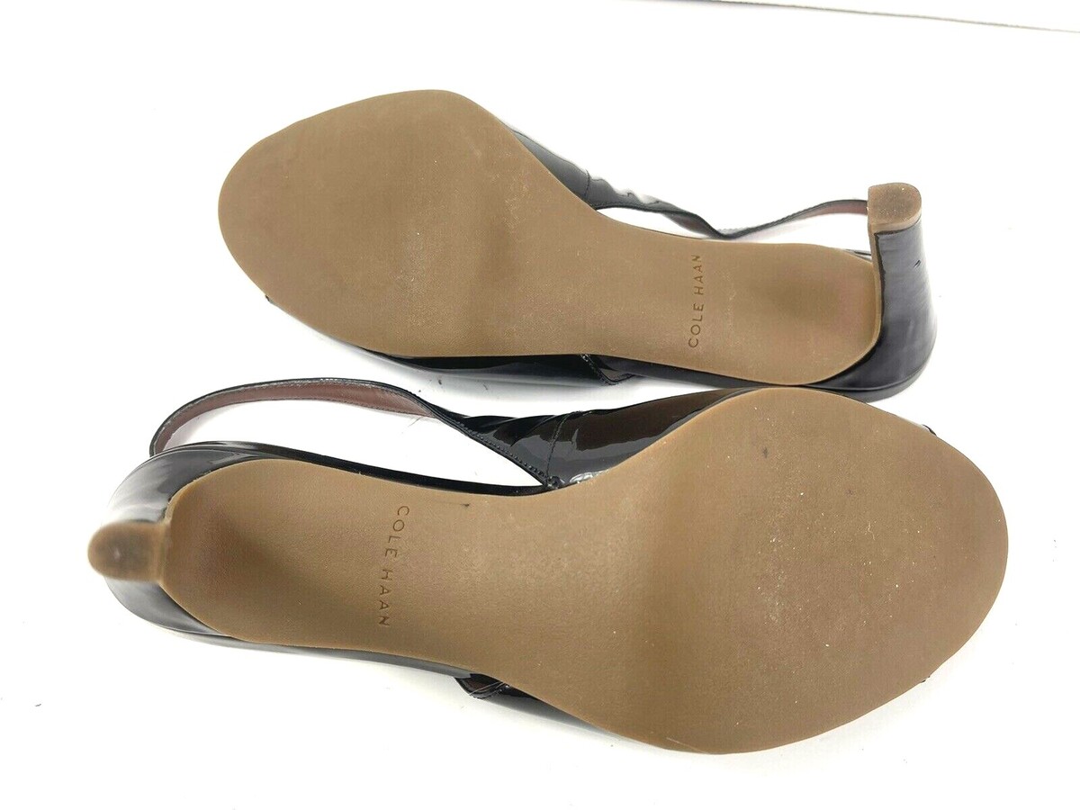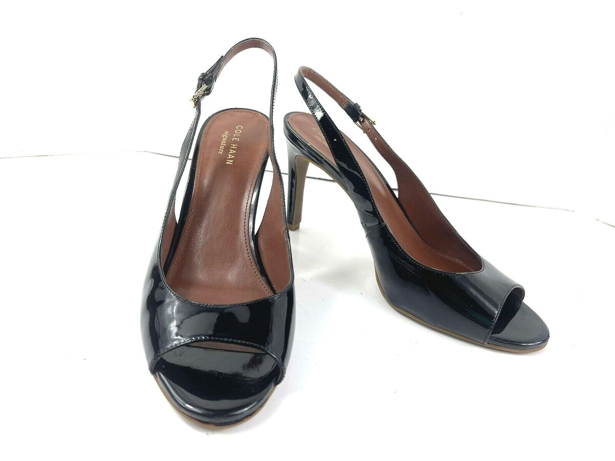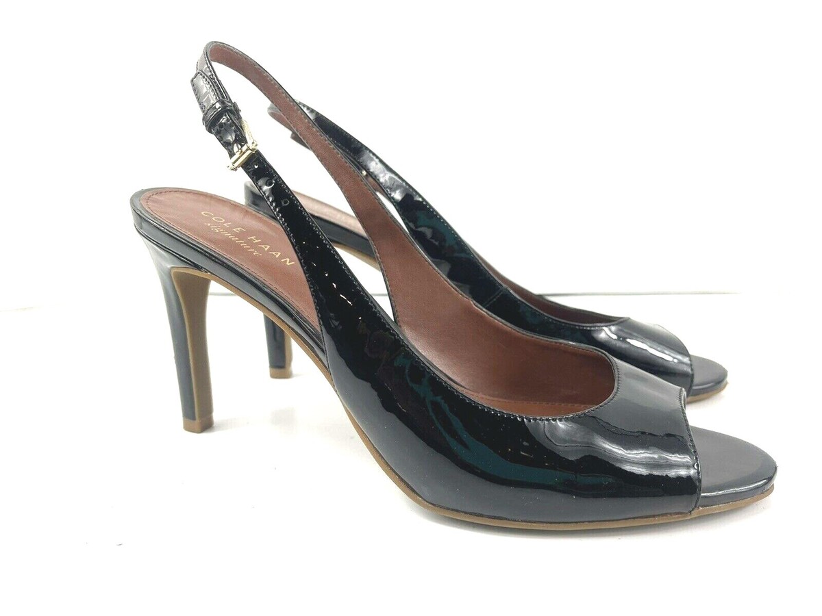 Cole Haan Women 8B Signature Juliana Shoes Black Patent Slingback Peep Toe Heels