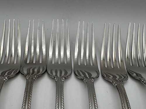 These dinner forks measure 8" in length and are in good estate condition with normal wear from regular use.