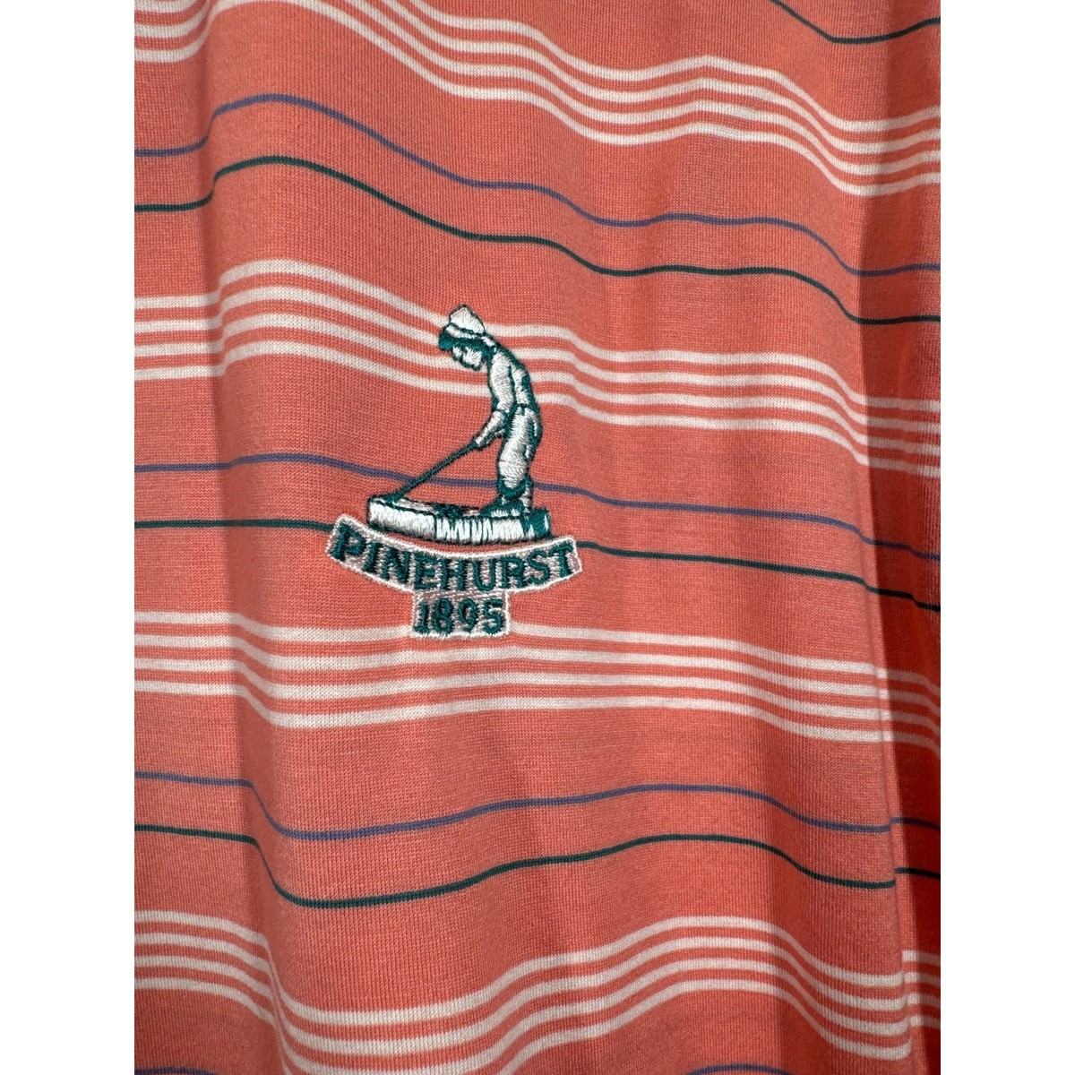 Fairway Greene Salmon Striped Polo Golf Pinehurst Logo 1895 Size Medium