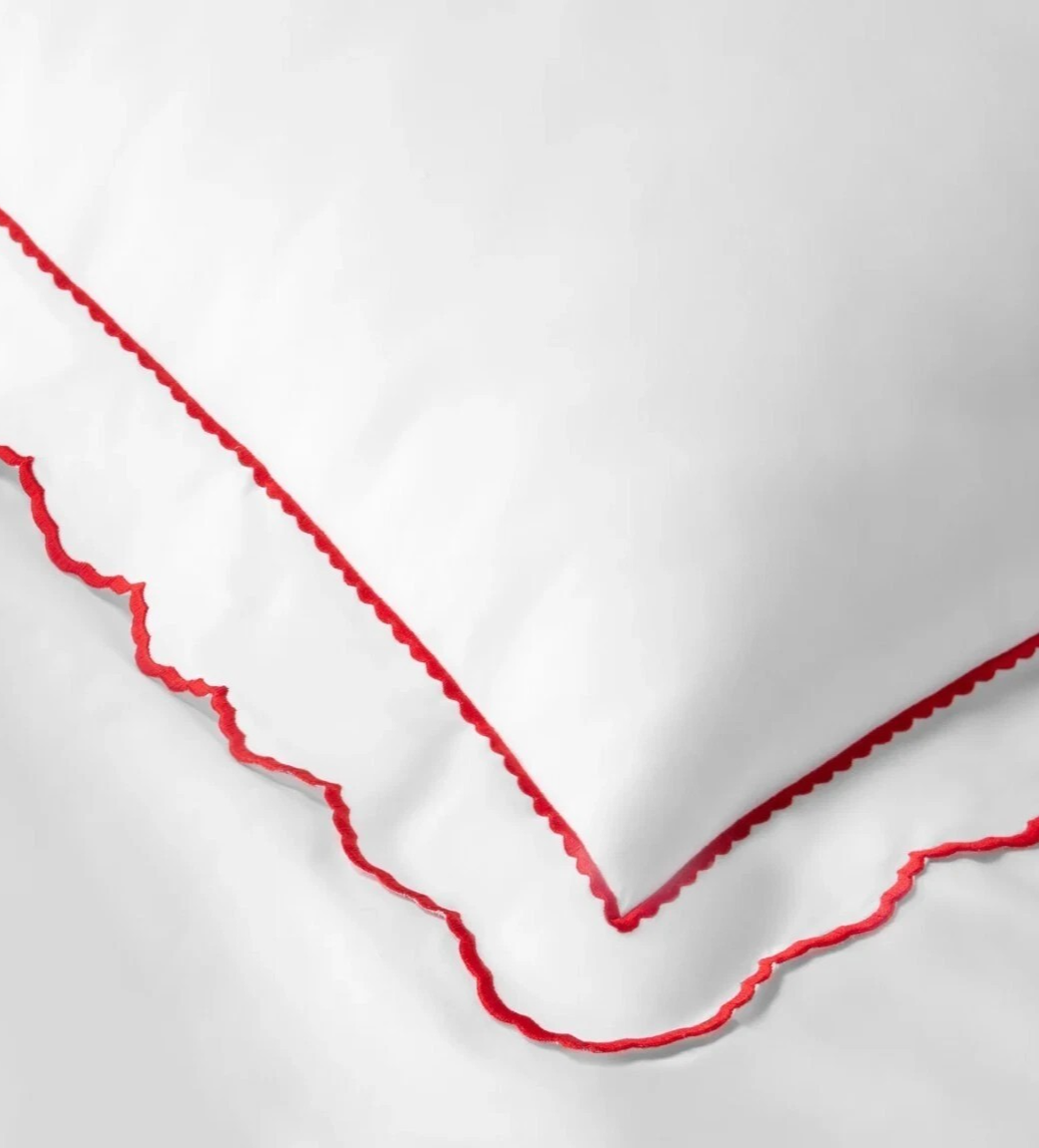 Sferra Pettine Boudoir Sham Crimson Red Scalloped Embroidery Percale Cotton New