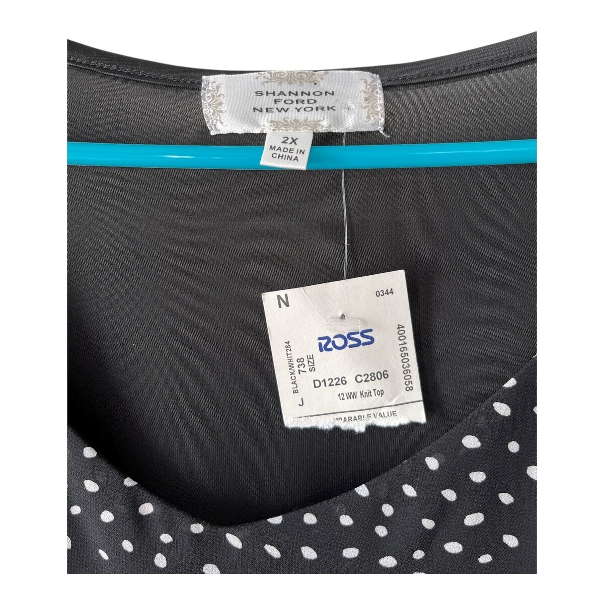 Shannon Ford New York Women’s 2X Black White Polka Dot Asymmetrical Knit Top