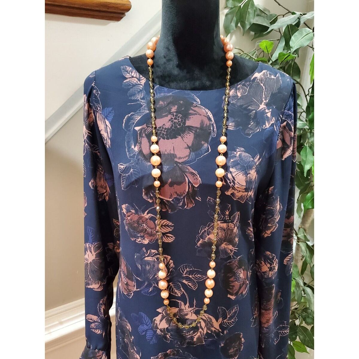 Lila Rose Women's Blue Polyester Round Neck Long Sleeve Knee Length Dress Size 8.