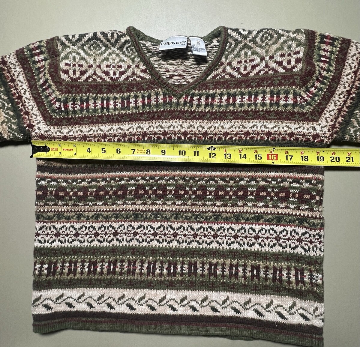 The Fashion Bug Nature Pattern Multicolor Sweater in women's size M is a stylish and trendy pullover sweater that features a vibrant multicolor design with a nature theme. This sweater is perfect for women who love to make a statement with their fashion choices. The regular size fit and comfortable material make it a versatile piece that can be dressed up or down for any occasion.
