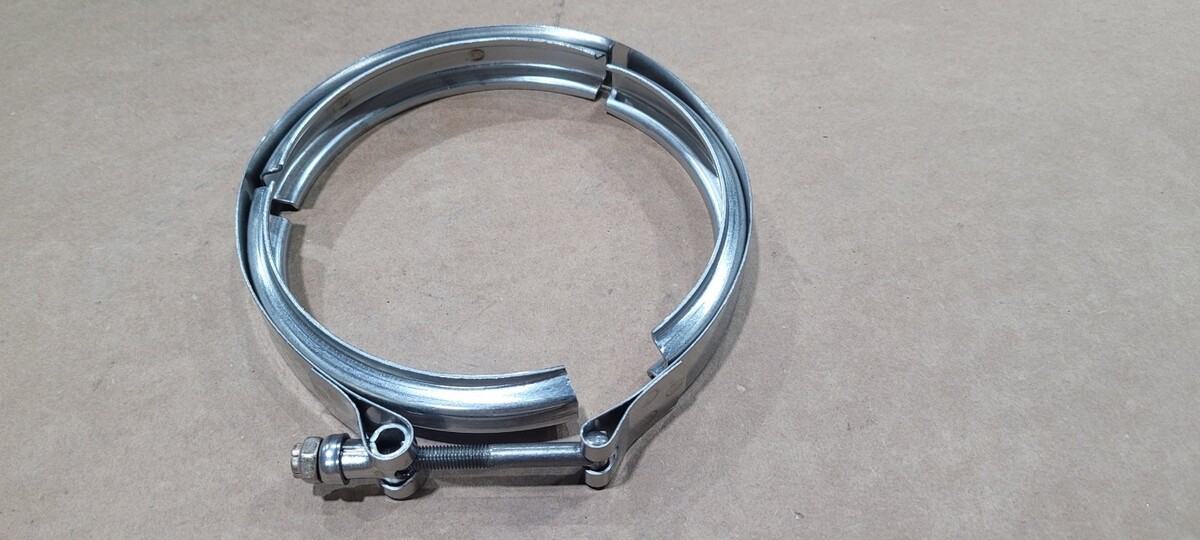 Full Marmon V-band exhaust clamp for S400 / S410SX turbos. This clamp holds the down pipe to the back of the turbo.