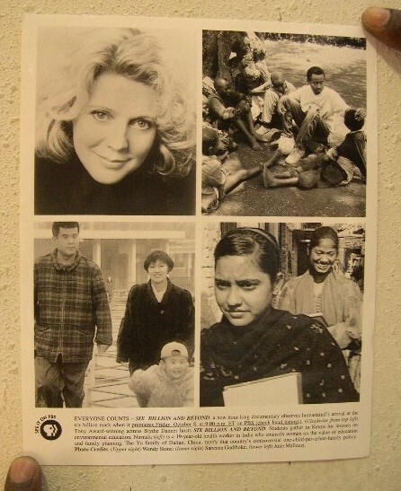 The press kit photo is 8 inches by 10 inches and is in near mint condition with a couple very mild edge dings. It is for the documentary observing humankind's arrival at the six billiion mark. It comes shipped rolled in a hard cardboard tube. PK15