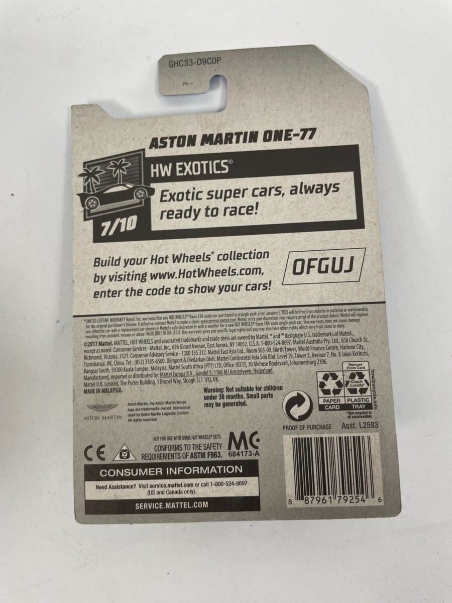 Featuring : Van / Sports Car /Hot Wheels Aston Martin One-77 HW Exotics GHC33-D9C0P #H41