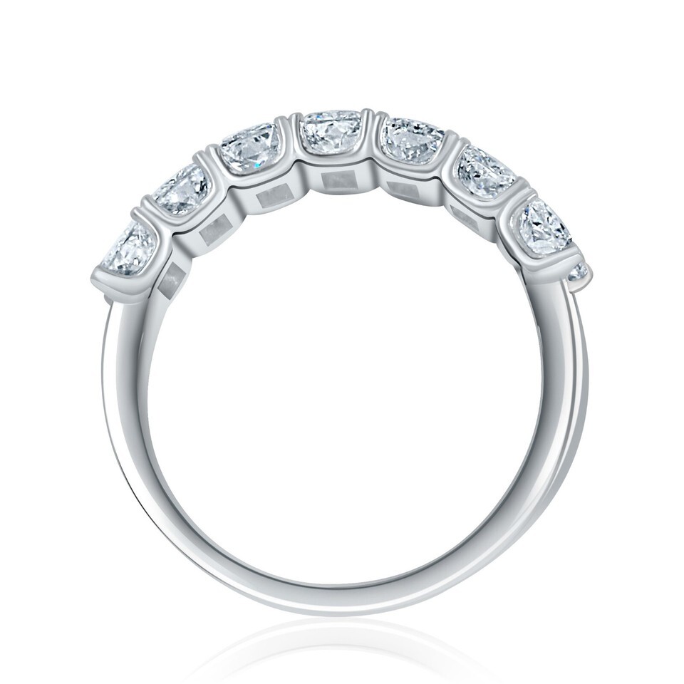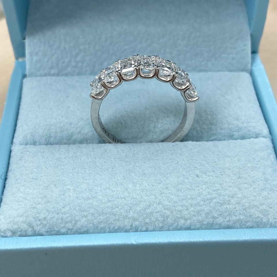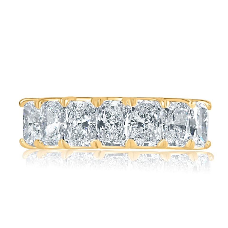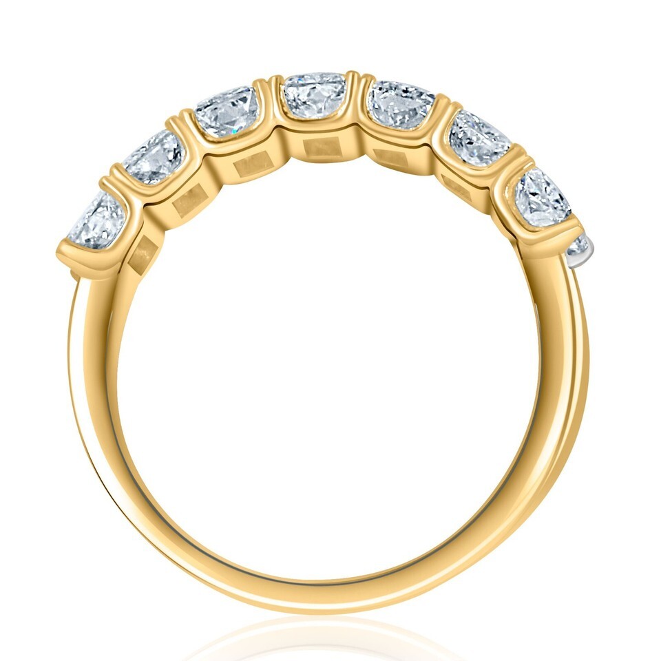This u-shape setting diamond wedding band is a dazzling expression of love and commitment. Crafted in stunning 14k solid gold, it features seven radiant cut cut lab-grown diamonds, each securely held in a classic prong setting. The total carat weight is 2.50 carats.