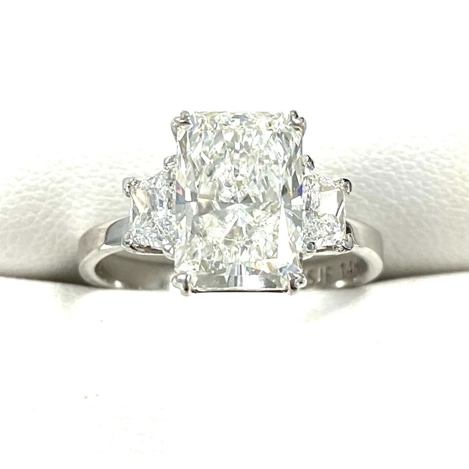 Authenticity Guarantee 3-Stone IGI 3CT F-VS1 Lab Grown Radiant Cut Diamond R...