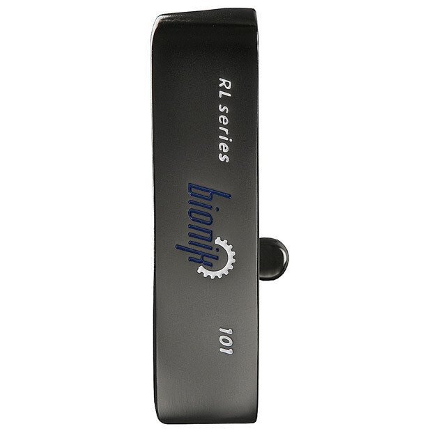 The BLACK Bionik 101 putter features a traditional blade design with a high-optic BLACK paint scheme for an unusually striking and extremely durable new appearance. The zinc body is highlighted with a contrasting soft, silver honeycomb precision milled face insert to ensure superior performance. The familiar, classic design and black targeting stripe help to make lining up your shot simple and intuitive. If you're looking to take control of the green and drop some putts off your scorecard, you need this putter!
