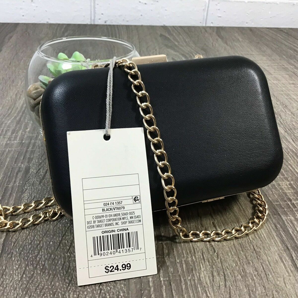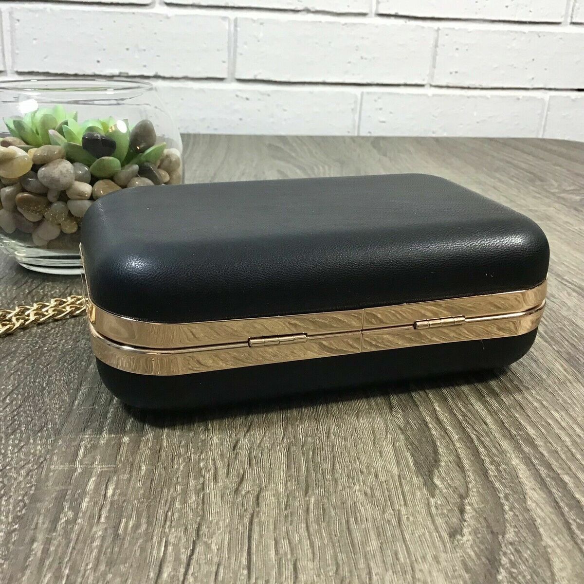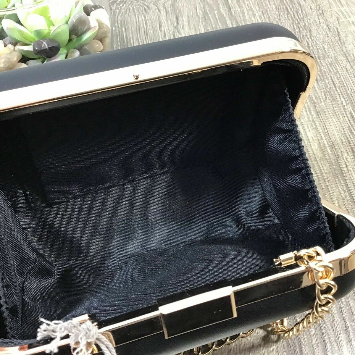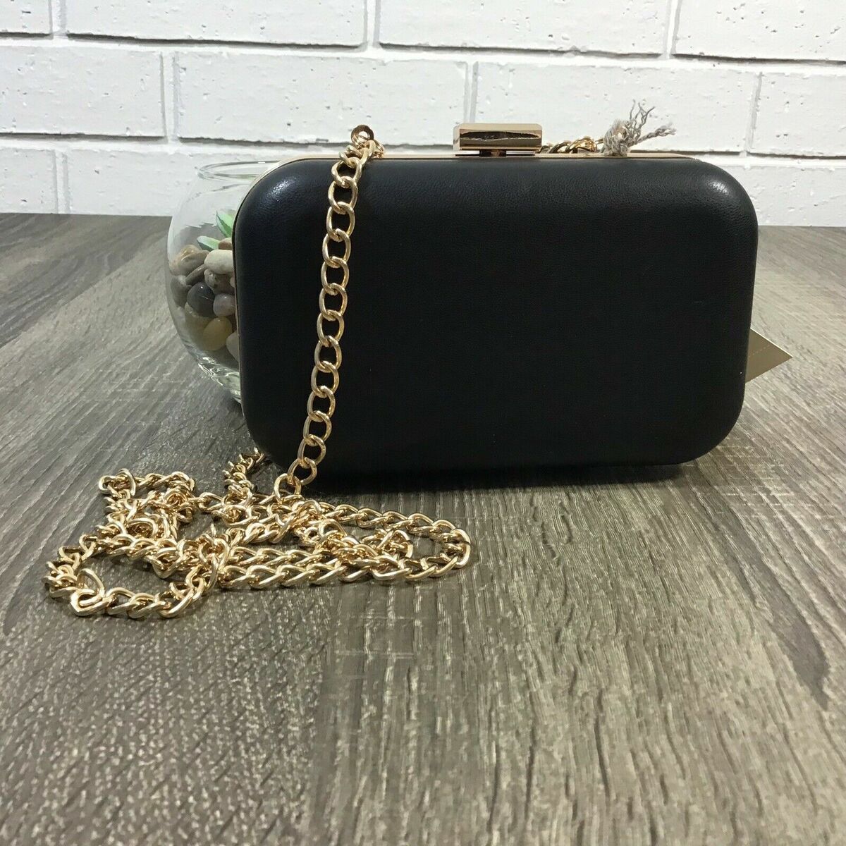 A New Day Hartschale Clutch Geldbörse Schwarz Gold Rand Abnehmbar Umhänge Kette