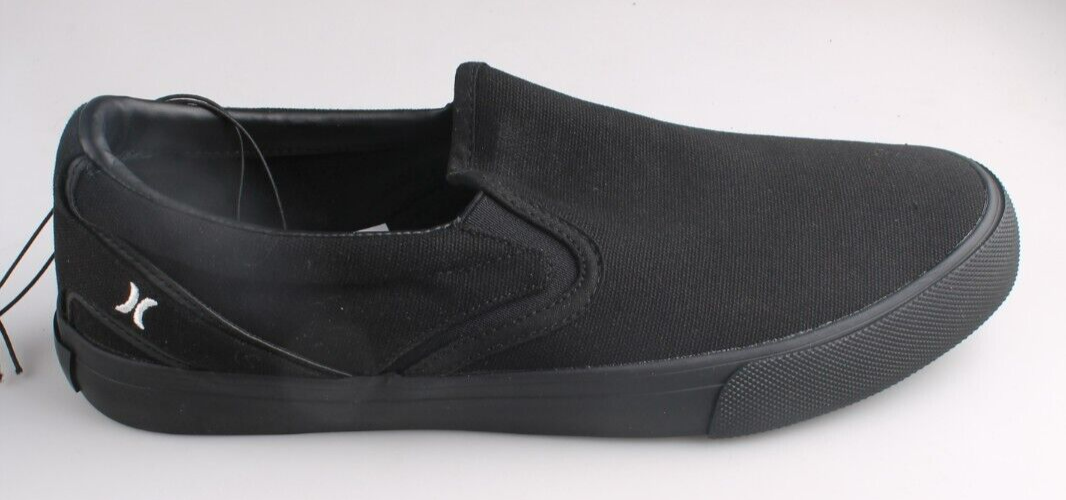 Der Arlo Slip-on-Deck-Schuh der Hurley Herren ist ein ungezwungener Sneaker in soliden schwarzen Farbe mit runden Zehenform.