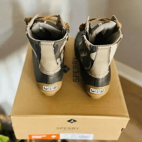SPERRY TOP-SIDER Syren Gulf Camo Duck Toe Boot, Rain Boot, Green Camo, 8.5, NWT