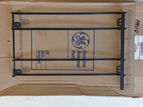 A la venta hay una rejilla para horno con guía con monograma GE nueva en caja abierta, pieza de repuesto para mano izquierda, negra WB02K10397.