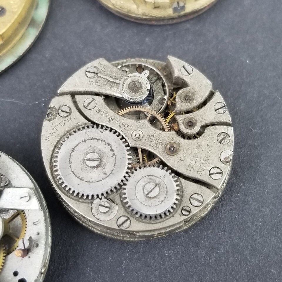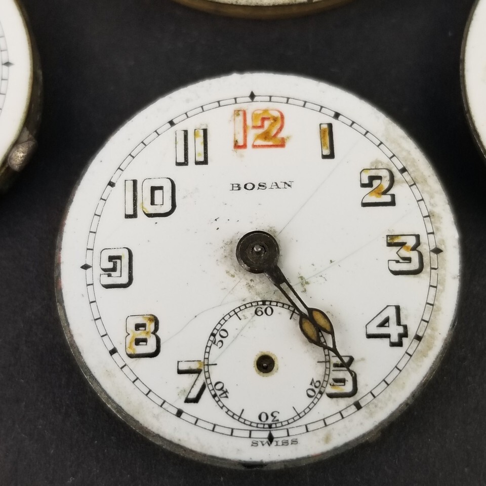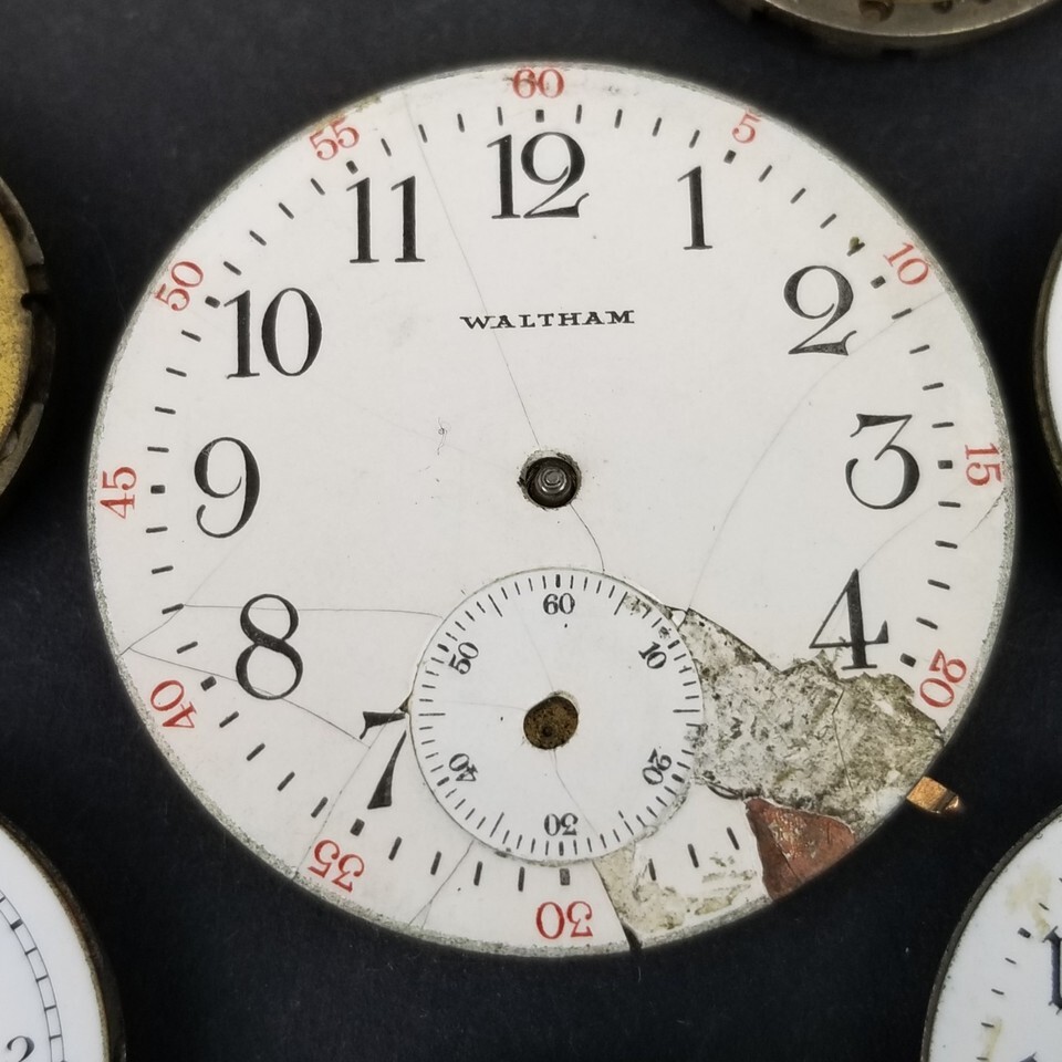 antique pocket watch movement lot X7 Waltham Crown Bosan face parts vintage