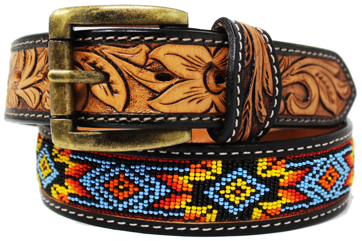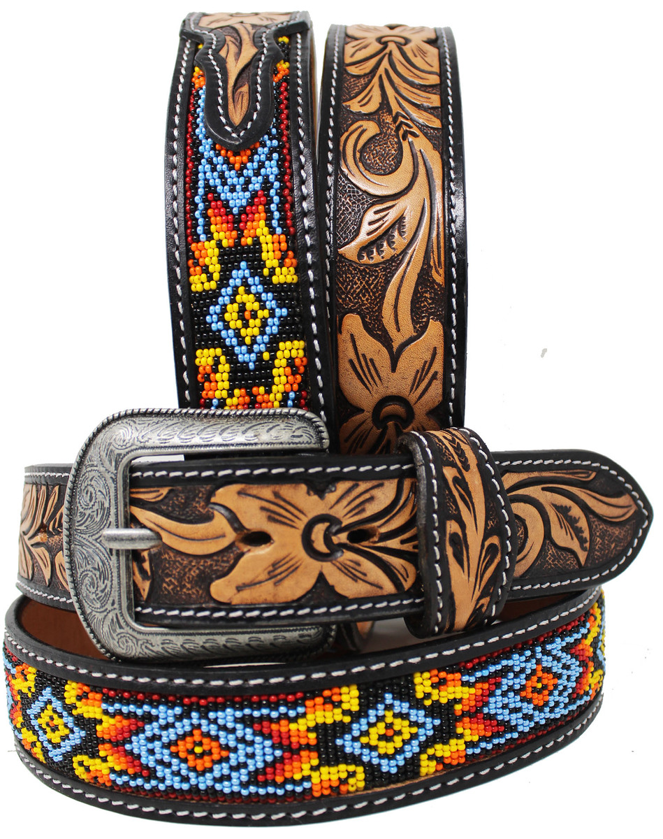 Mens Beaded Belt Western Tooled Fashion and 47 similar items