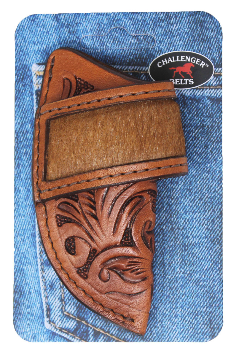 This knife holder comes accented with a hand-tooled antique floral design, and a beaded inlay. Matching belt (26RS31) is available for this knife sheath!. Sheath measures approximately 2-1/2" L x 4-1/2" W.