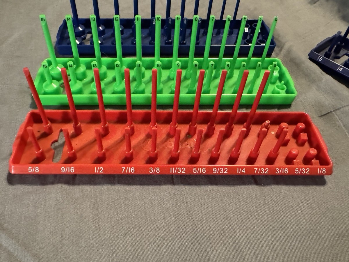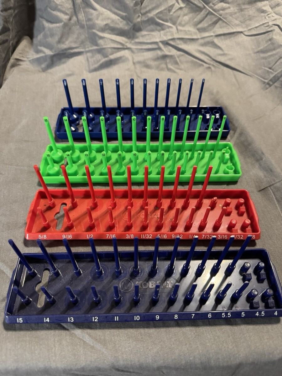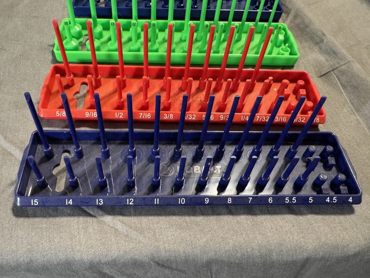 Kobalt Socket Organizer Tray Lot SAE Metric Holders Red Green Blue Tool Storage