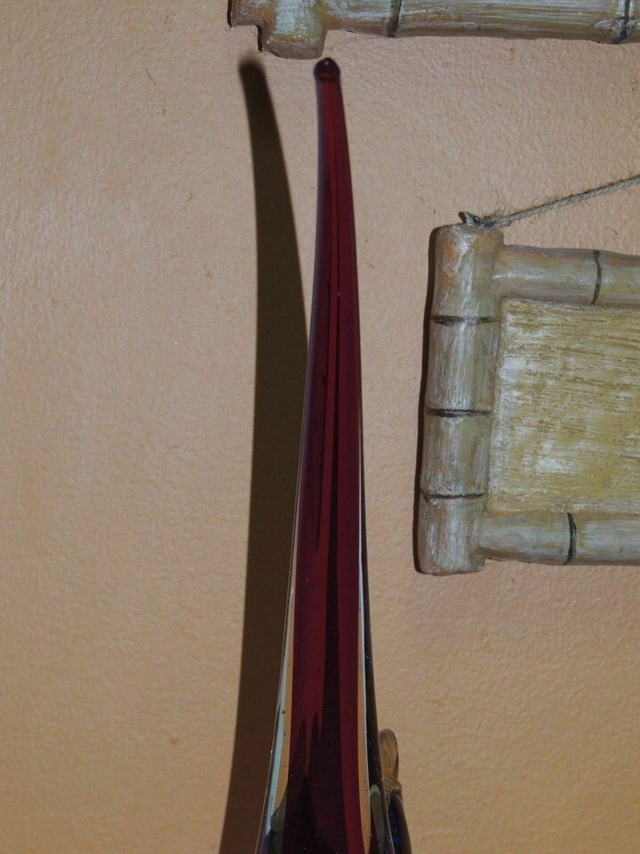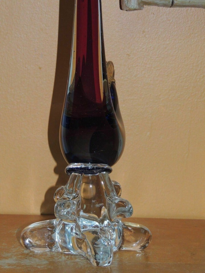 Art Glass Quail / Bird Red Blue 13.5" gold sommerso unmarked Italian Murano