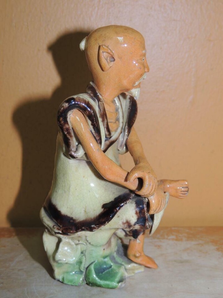 Unusual Chinese Mud Man Men Beige Robe w Fan and 50 similar items