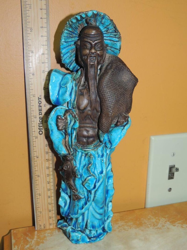 Chinese type Mud Man 10.5" Mudman Vintage turquoise unsigned poss Ugo Zaccagnini