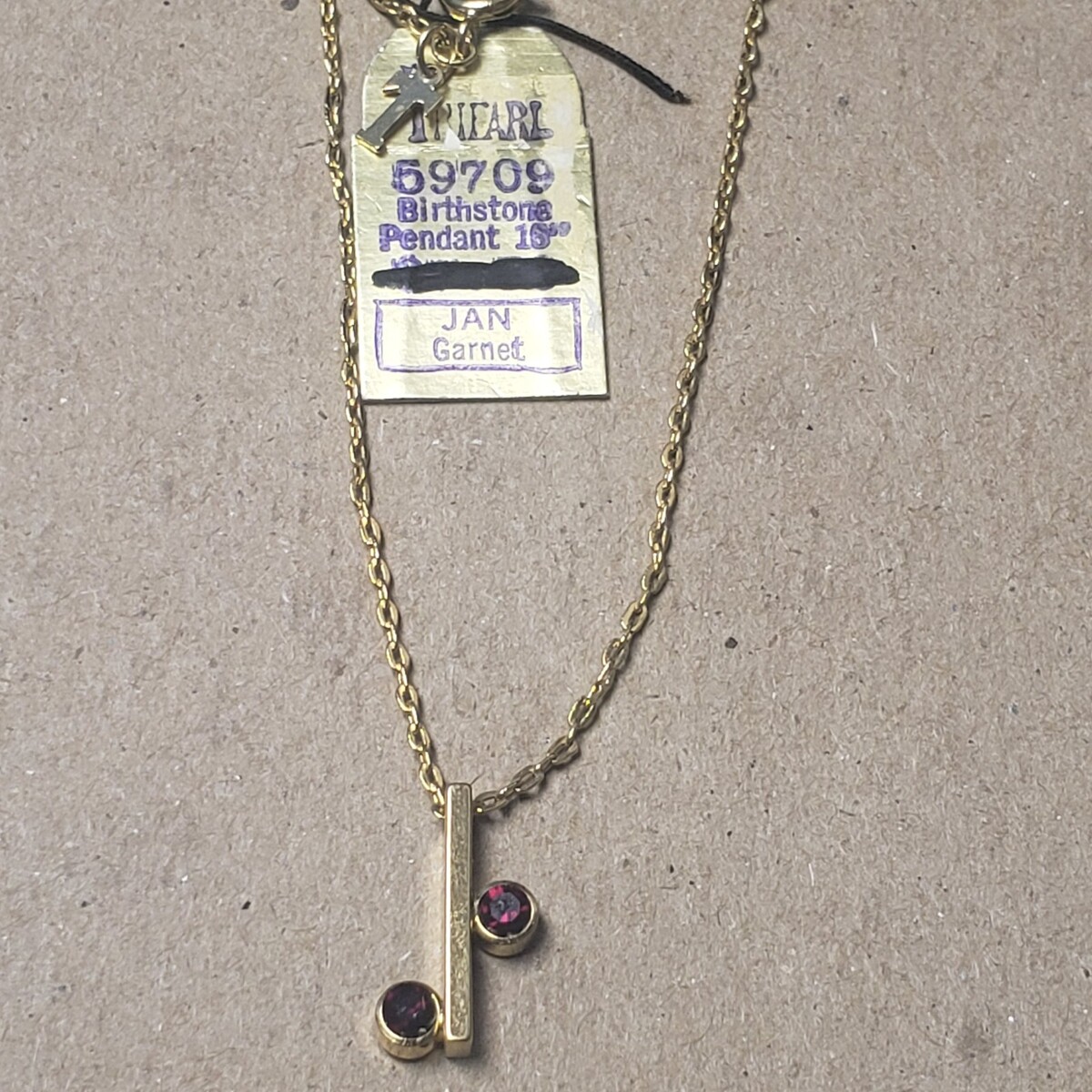 Vintage 1970's Crown Trifari Jewels Gold Birthstone January Garnet 16" Necklace