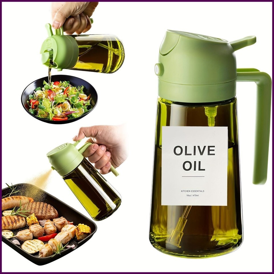 Kitchen Glass Olive Oil Dispenser, Oil Sprayer Bottle For Cooking, 2-in-1 Oil Bottle And Cooking Sprayer, Auto Flip Cap, 16oz Olive Green (Light Blocking) With Label Stickers Halloween Christmas Gifts