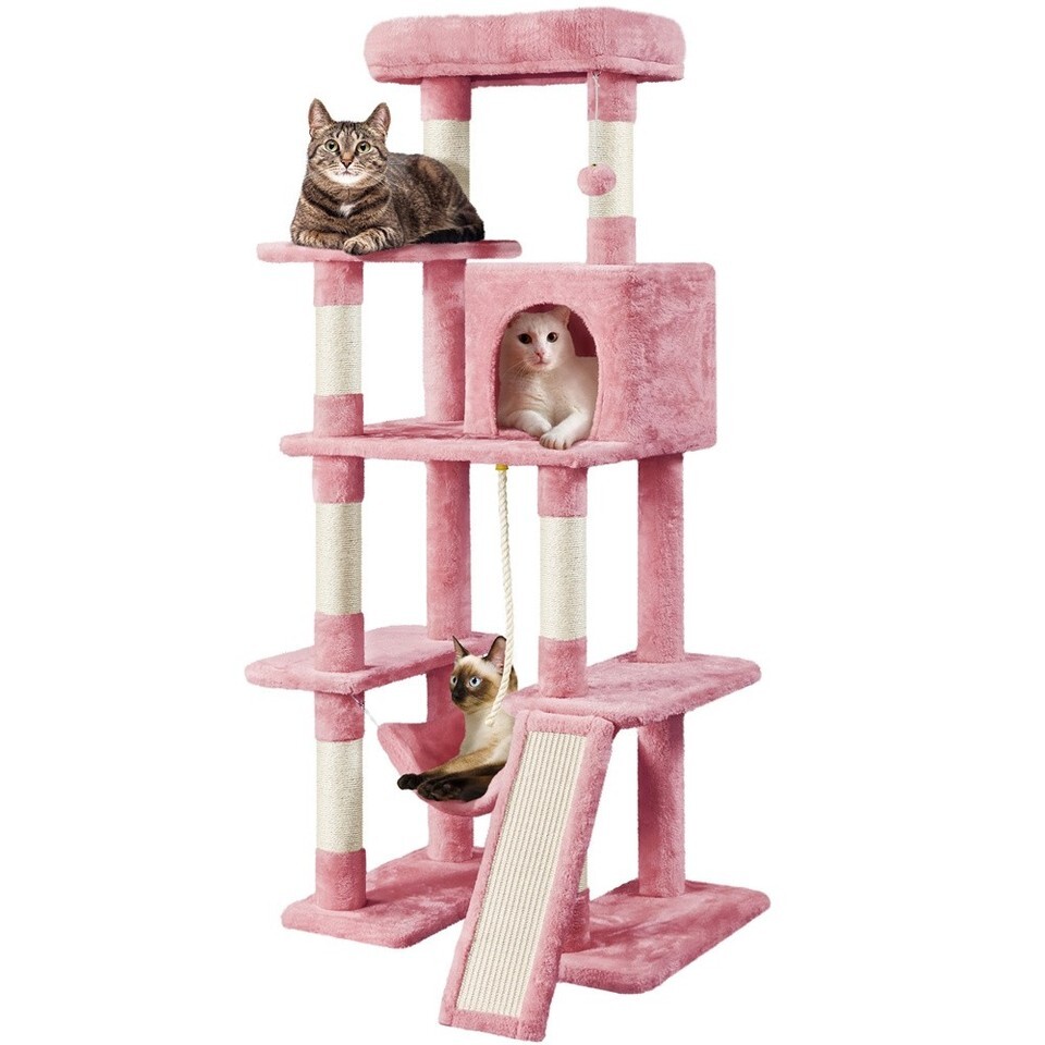 Costoffs Cat Tree, 63in Multi-Level Cat Tree with Hammock Sisal Scratching Posts, Cat Tower with Cozy Condo Top Perch, Pet Activity Center for Indoor Cats Kittens Small Medium Large Cats, Black/Pink