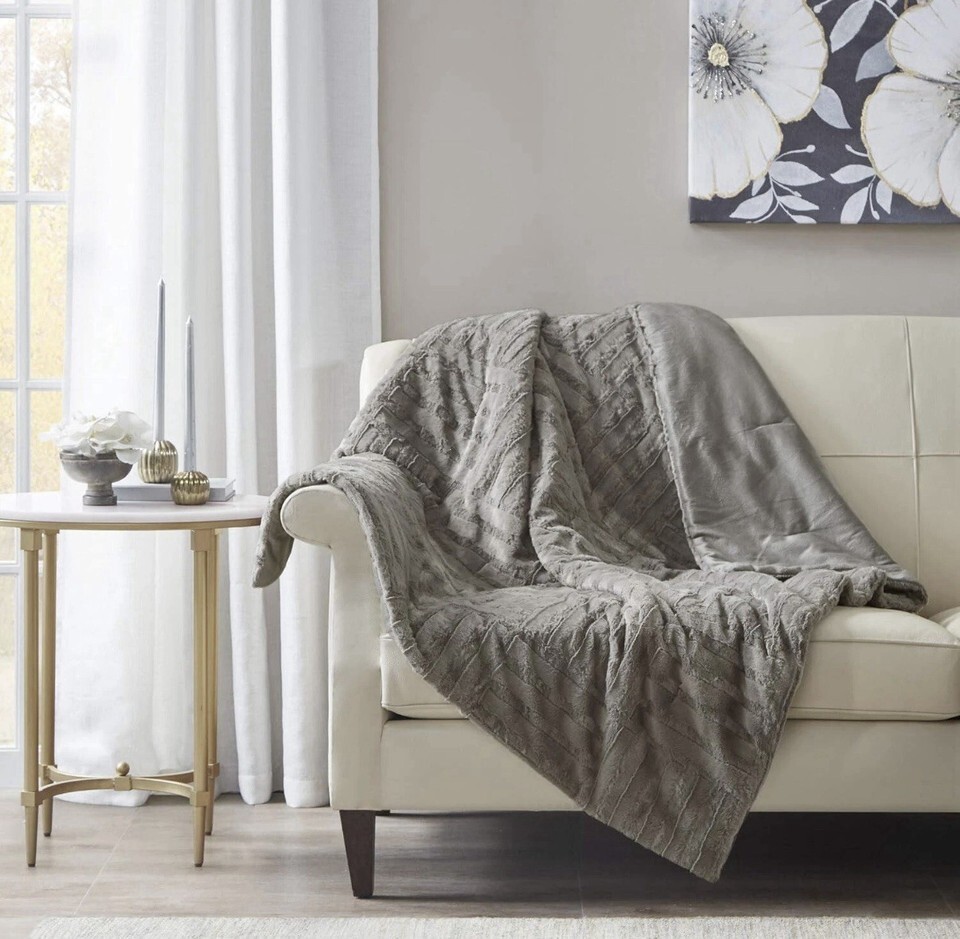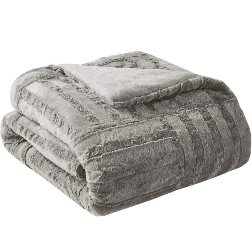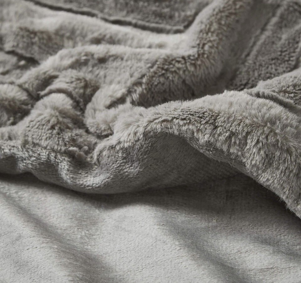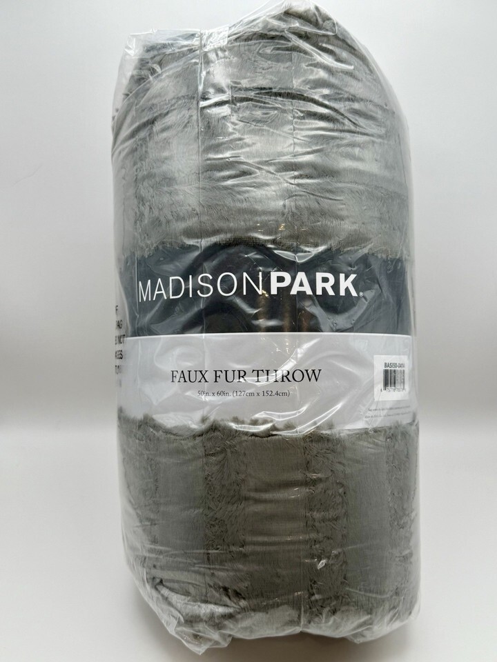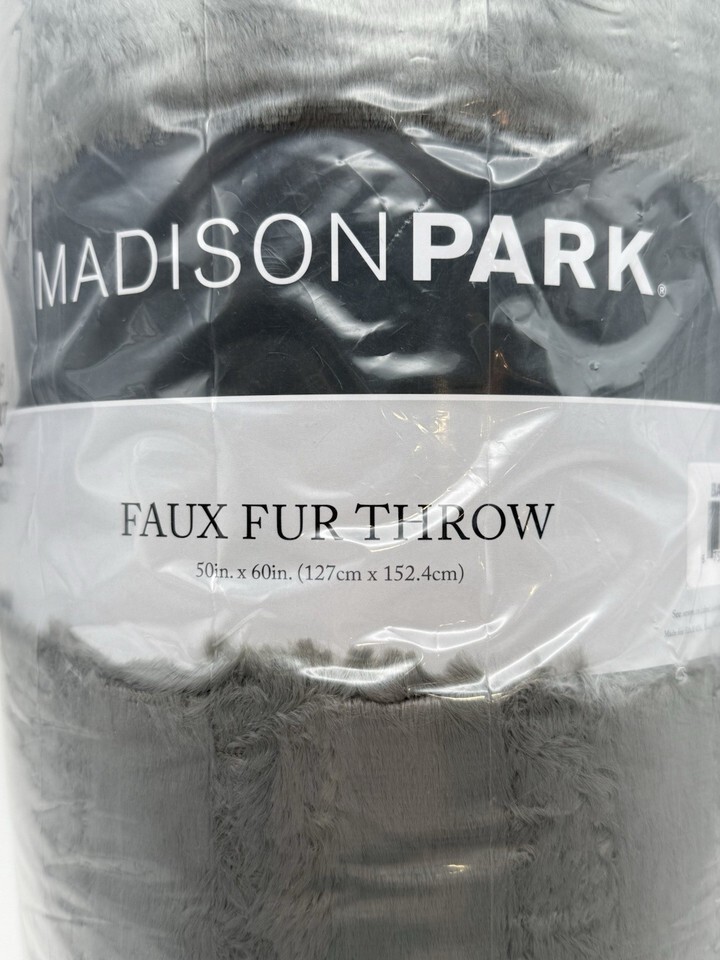 MADISON PARK FAUX FUR ARTIC CHECKERBOARD THROW 50" X 60" GRAY PLUSH **sealed**