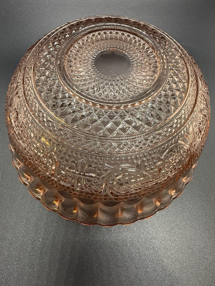 Vintage Indonesia KIG Pink Glass Serving Bowl 7” x 2.5”