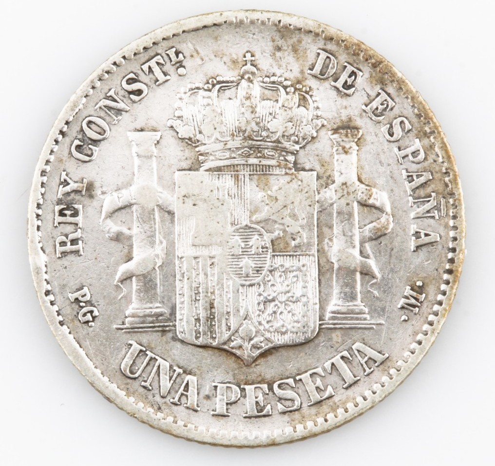 1891 SPAIN 1 PESETA VERY GOOD COIN CALIFORNIA BUYERS: 9% TAX WILL BE ADDED Please call us with any Inquiries: Continental Coin and Jewelry Company Web Department: Monday - Friday, from 10:30am - 6pm PST Reference Item #FCC-1756