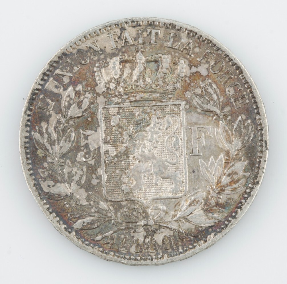 1869 Belgium 5 Francs coin