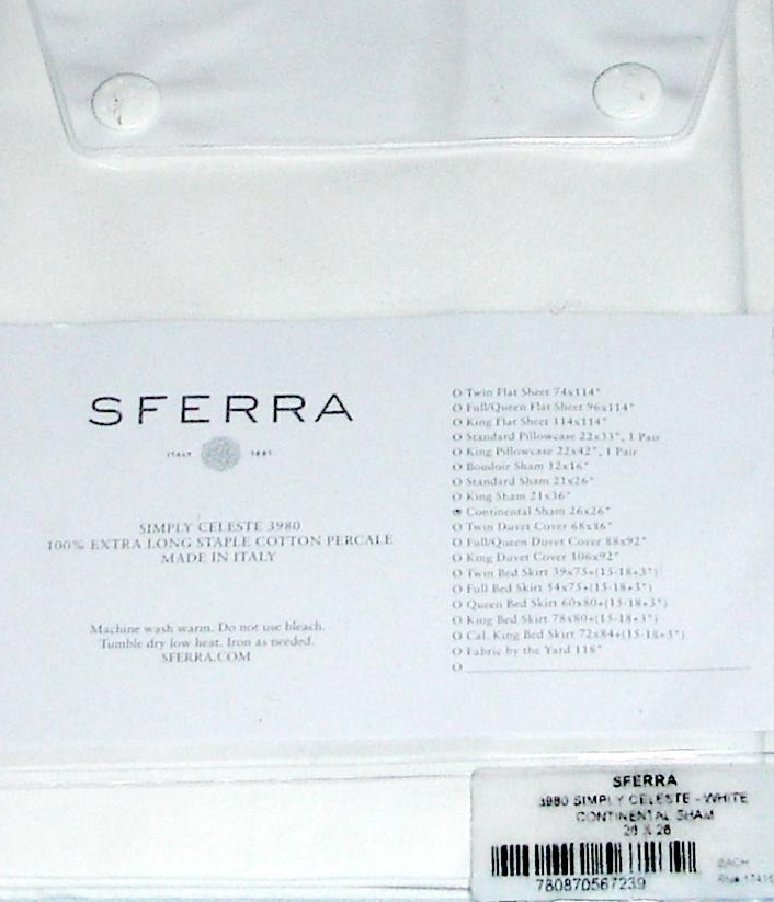 Sferra Simply Celeste White Percale Euro Sham Extra Long Staple Cotton New