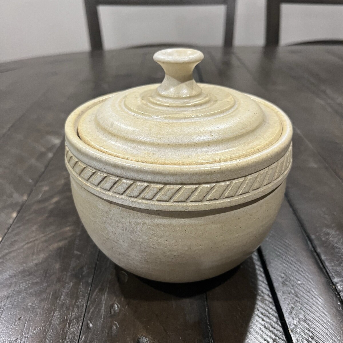 The Loy Carpenter West Virginia Studio Art Pottery Bowl Lid from 1998 is a beautifully crafted piece of American Empire style art pottery. Made from beige clay, this unique set includes a matching lid for the bowl. The intricate etched design showcases the artistry and skill of the studio pottery production technique used by Loy Carpenter. This piece would make a stunning addition to any pottery collection or as a decorative accent in a home.