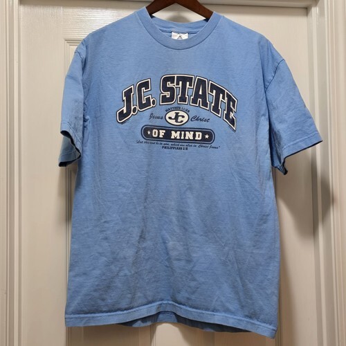 Vintage J.C. State Jesus Christ State Of Mind Blue Shirt Chirstian Men's L