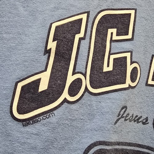 Good pre-owned Condition J.C. State Of Mind - Jesus Christ. "Let this mind be in you. Which was also in Christ Jesus." - Philippians 2:5. Blue short sleeve Shirt. T-Shirt is made by AAA.