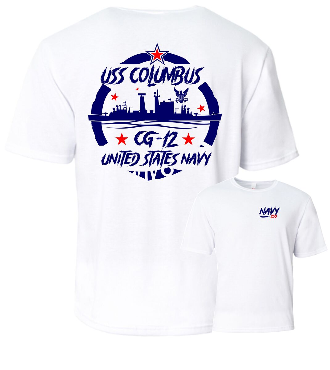 Gildan Cotton Blend T-Shirt with your ship name, hull # and accurate silhouette.