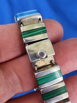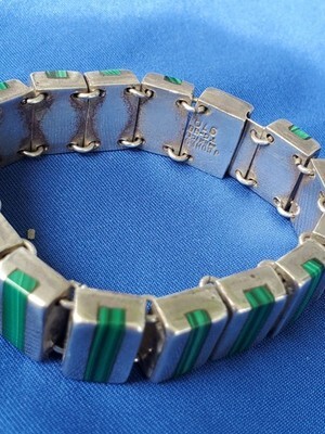 Mexican Artist Designer J. GOMES sterling silver 970 Malachite chain link bracelet.