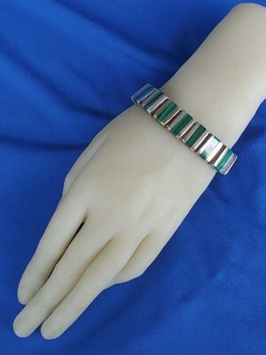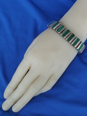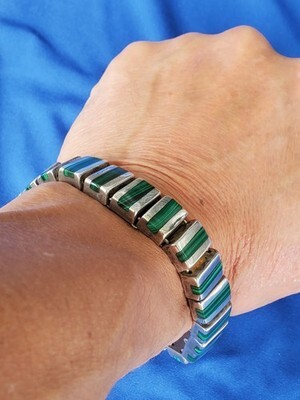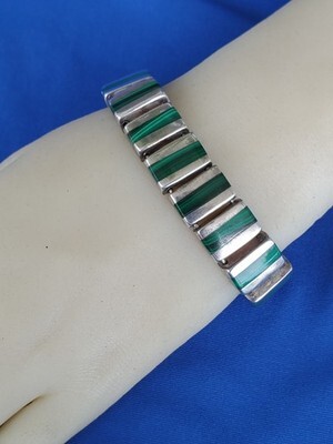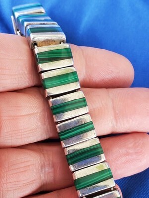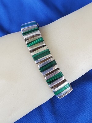 J Gomes DESIGNER SIGNED Sterling Silver 970 Malachite Texaco Bracelet 6.5" INCH