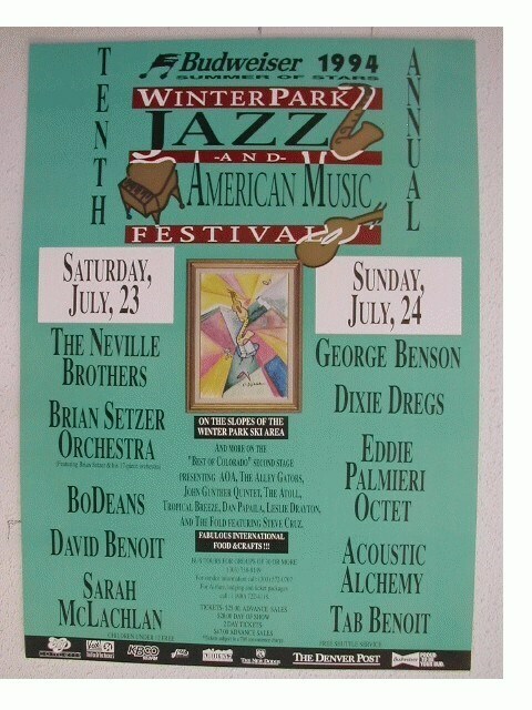 Das erste Poster ist 11 Zoll mal 17 Zoll. Das zweite Poster ist 12 Zoll mal 17 Zoll. Es ist für ein Winter Park Festival. Sie sind alle in neuwertigem Zustand. Sie sind alle für Denver sind Konzerte