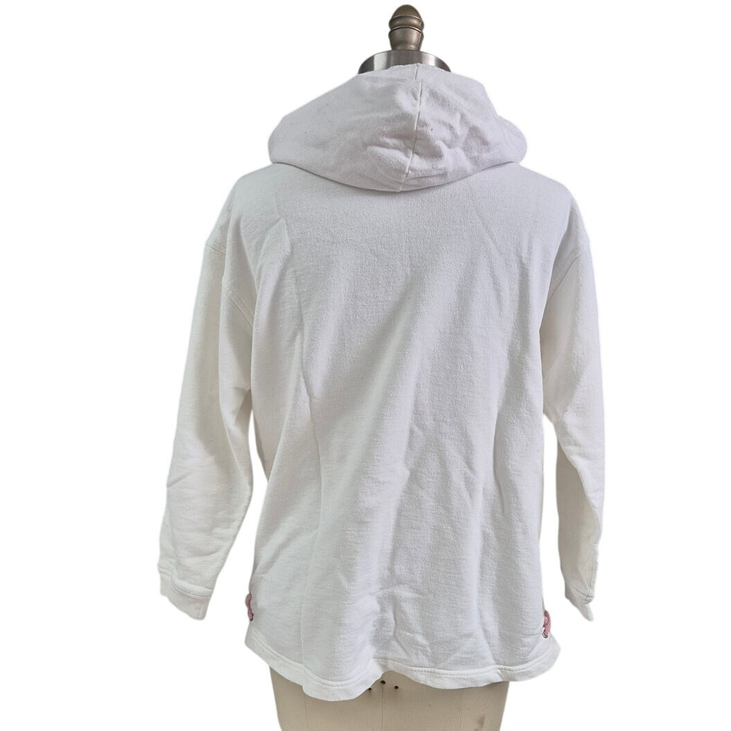 Vtg 80s 90s AJ Brandon 100% Cotton Hoodie White/Pink Women Sz M