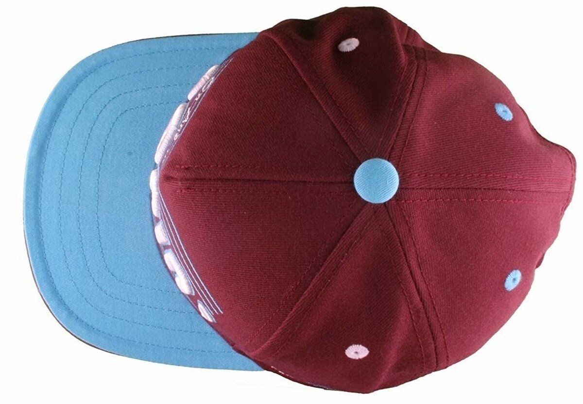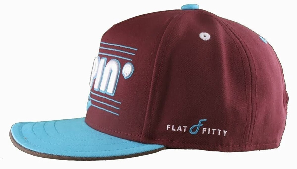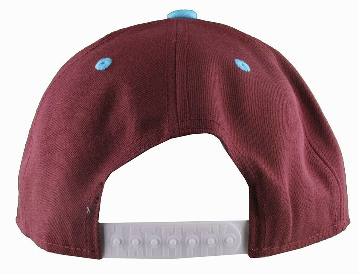 Esto es para un nuevo con etiquetas con el ajuste plano y la sombrero de beisbol de popin Borgoña / Carolina Blue Snapback ajustable 80% acrílico / 20% de poliester Ropa / accesorios autenticos Flat Fitty en la parte superior desde 05 ' Graficos bordados