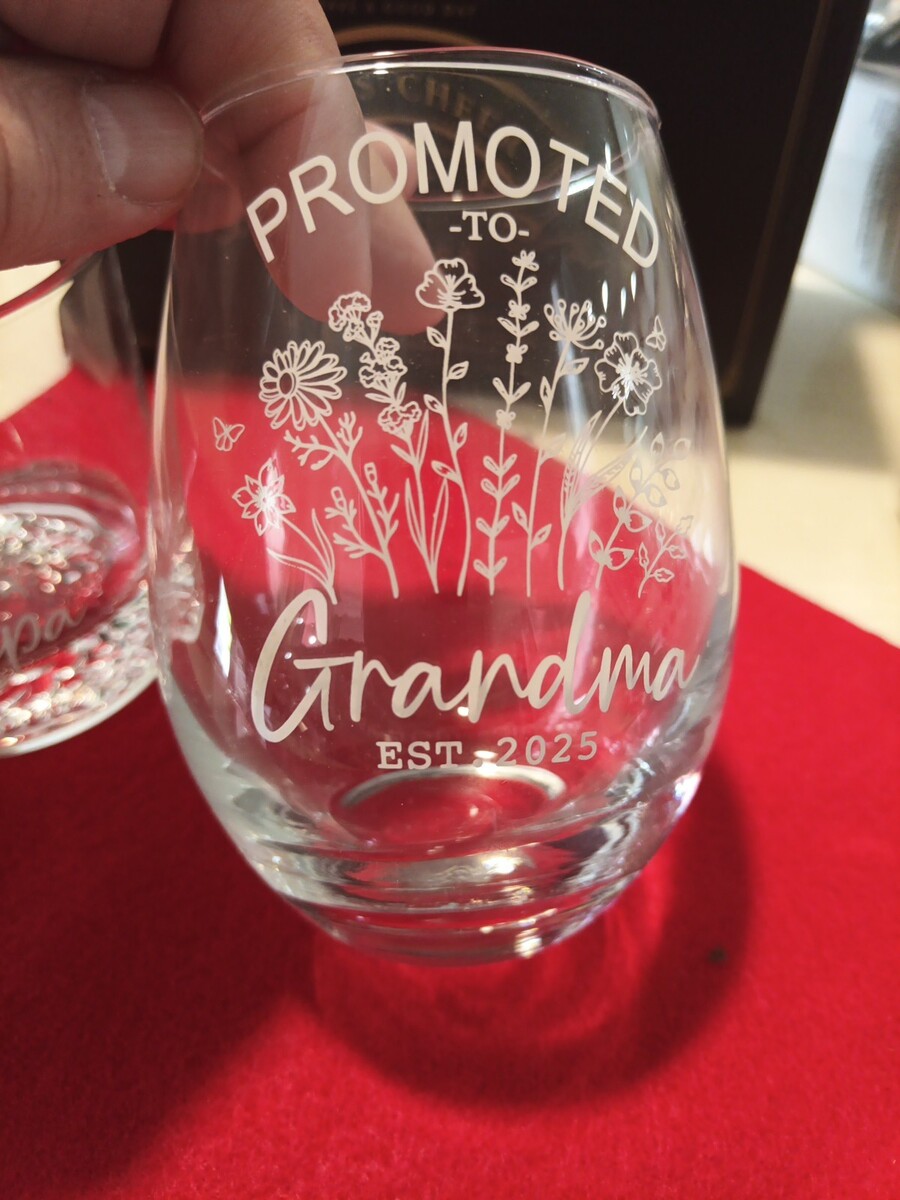 This product is a set of stemless wine glasses, perfect for celebrating grandparents on special occasions like birthdays. The glasses feature a novelty design with a round shape and a happy character, making them a fun and unique gift. Made of gold/clear glass, these hand-painted wine glasses are unbranded and come with a bag for easy gifting. With a height of 9 inches, this set includes one wine glass and is ideal for adults who appreciate a personalized touch to their celebrations.