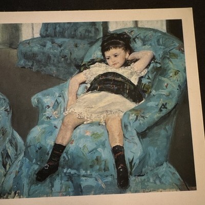 The Vintage Postcard features a charming illustration of a little girl in a blue armchair, reminiscent of Mary Cassatt's famous artwork. This artist card from 1884 showcases a timeless theme of children and art, perfect for collectors or those who appreciate vintage photography. The postcard is an original, unused piece from the United States, making it a unique addition to any collection of non-topographical postcards.