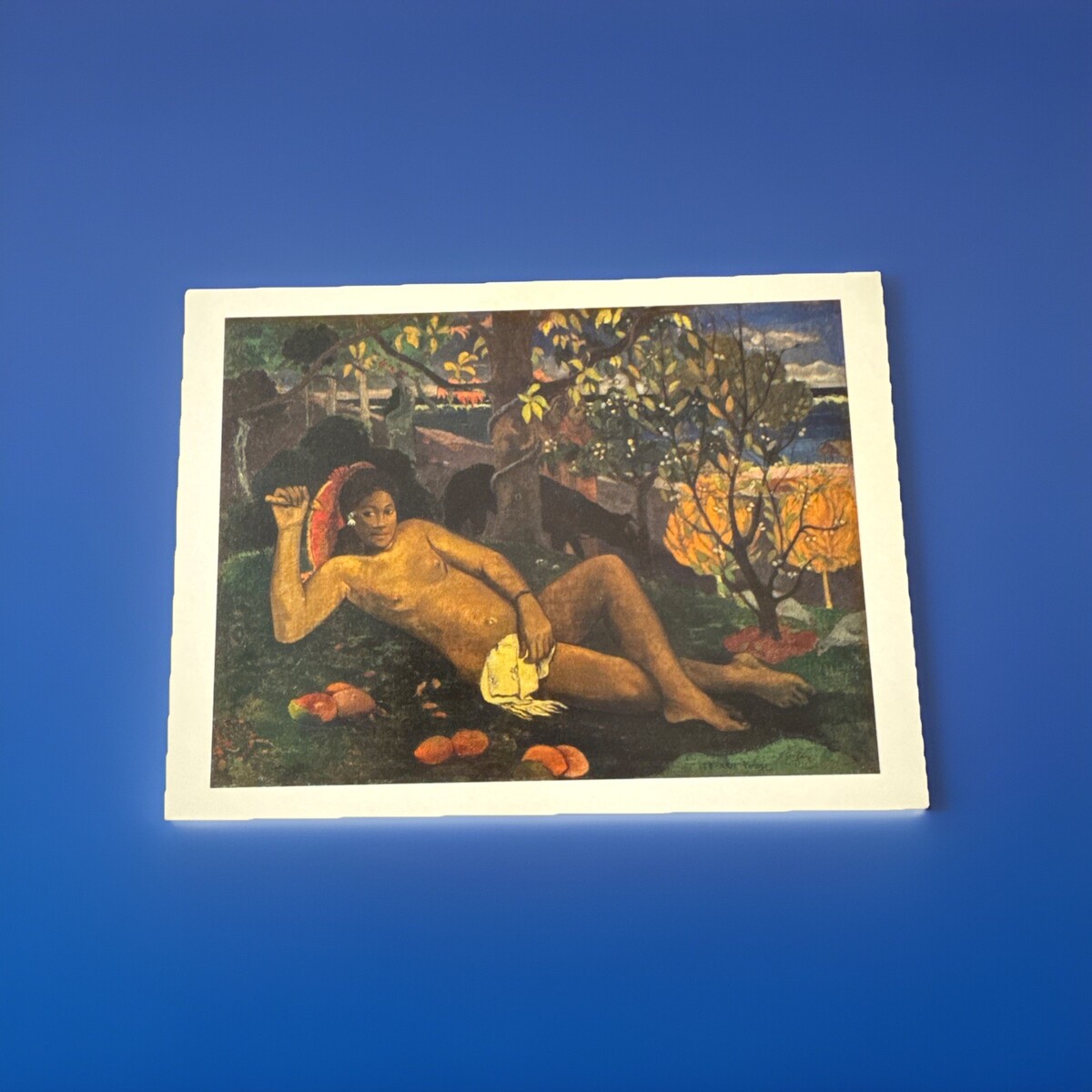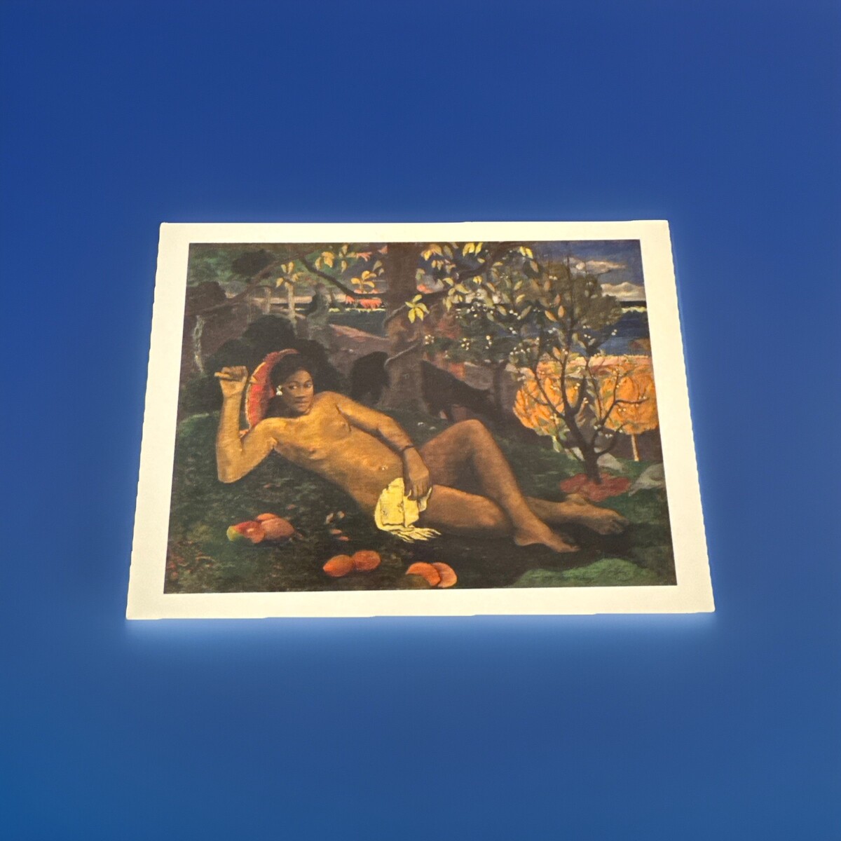 This vintage continental postcard features a lithographed print by artist Paul Gauguin depicting a noble woman, Te Arii Vahine. The postcard is from the Photochrome era (1939-Now) and is an original piece. It is unposted and suitable for any occasion, making it a unique and collectible item for those interested in art-themed postcards. Made in the United States, this postcard captures the essence of Gauguin's painting style and is a valuable addition to any postcard collection.