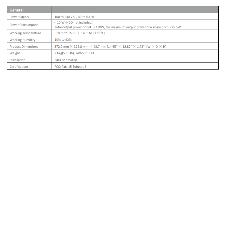 Video Input: 16 IP Channels @ 384 Mbps; 32 MP IPC Access (200 Mbps with backend AI enabled)