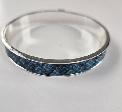 Blue snakeskin Bangle | 1970s Faux Leather & Silver Cuff