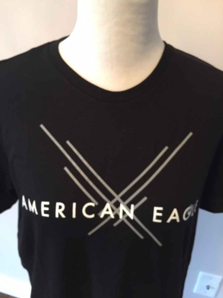 This new without tag American Eagle black short sleeve crewneck t-shirt is in excellent condition as it has never been worn. It features:
