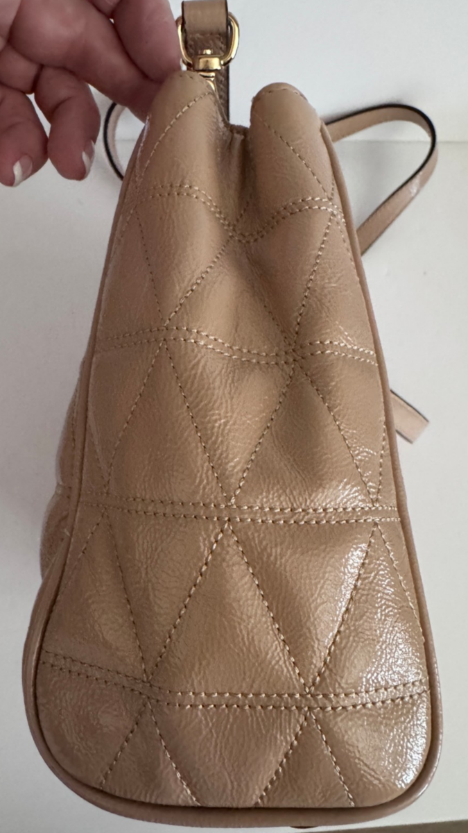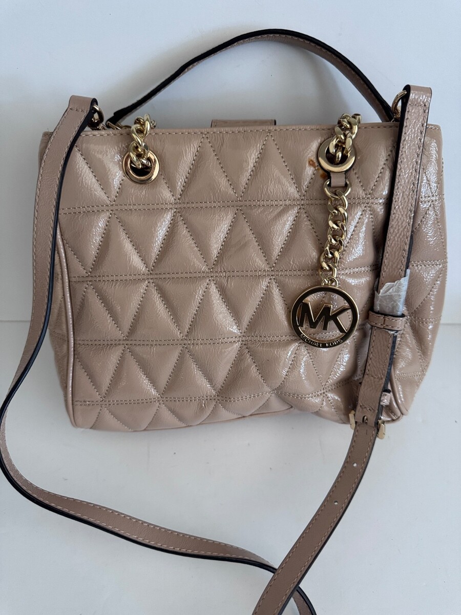 Michael Kors Susannah Tote Bag Crossbody Beige Quilted Leather Chain Handbag