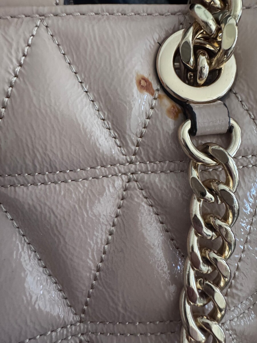 Michael Kors Susannah Tote Bag Womens Beige Quilted Leather Chain Shoulder Purse