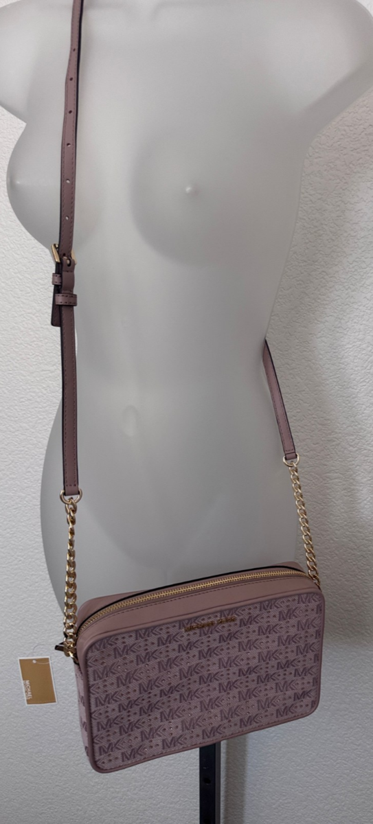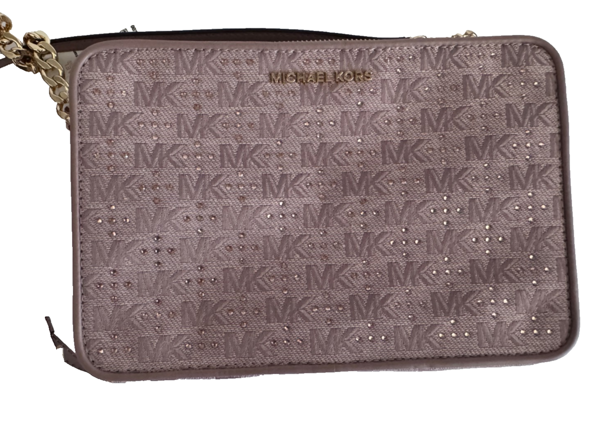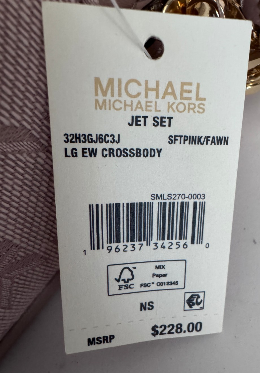 Michael Kors Jet Set East West Pink Fawn Canvas Logo Crossbody Handbag NWT